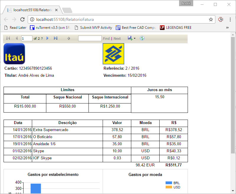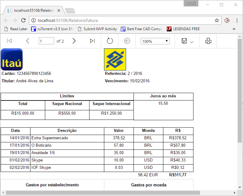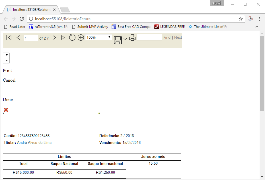 Por outro lado, o controle Web Forms foi completamente reformulado. Pelo que andei lendo, a Microsoft decidiu abandonar de vez a utilização de ActiveX para a impressão dos relatórios e está renderizando todo o conteúdo em HTML5. Porém, no relatório que eu testei as coisas não funcionaram muito bem: